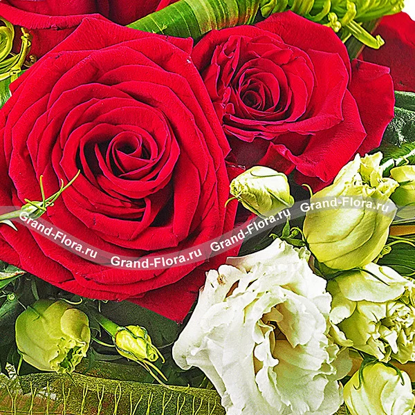 Букет из красных роз и эустом - Изысканность