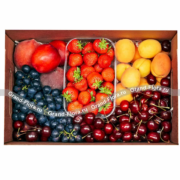 Коробка сочных фруктов и вкусного настроения, разбудит дремлющее веселье и наполнит любой день духом праздника. Спелые ягоды и ароматные фрукты станут прекрасным подарком к торжеству, юбилею, как пожелание скорейшего выздоровления и как напоминание о Ваших теплых чувствах. Будьте оригинальными и дарите свои любимым полезные и вкусные подарки.